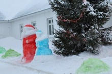 Сегодня зажгла свои огоньки новогодняя елка перед дверями школы. Рядом со сверкающей елкой заняли свои места новогодние снежные фигурки Деда Мороза и Снегурочки, которые выполнены силами учащихся под руководством учителей.