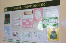 На нашем «Уголке творчества» на днях появились новые экспозиции: это выставка работ, выполненных в рамках недели русского и татарского языков и выставка рисунков к новому году, где сои работы выставили учащиеся начальных классов