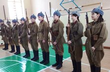 Во второй части наши гости провели с учащимися старших классов мастер-класс с использованием военной формы и оружия Красной Армии до начала Второй мировой войны. Девушки и юноши подобрали себе военную форму, включая обувь, буденовки и шинели, обучались приемам с оружием, строевым приемам, в самом конце попробовали и пострелять. У ребят встреча с Александром Александровичем и его командой оставила неизгладимые впечатления -