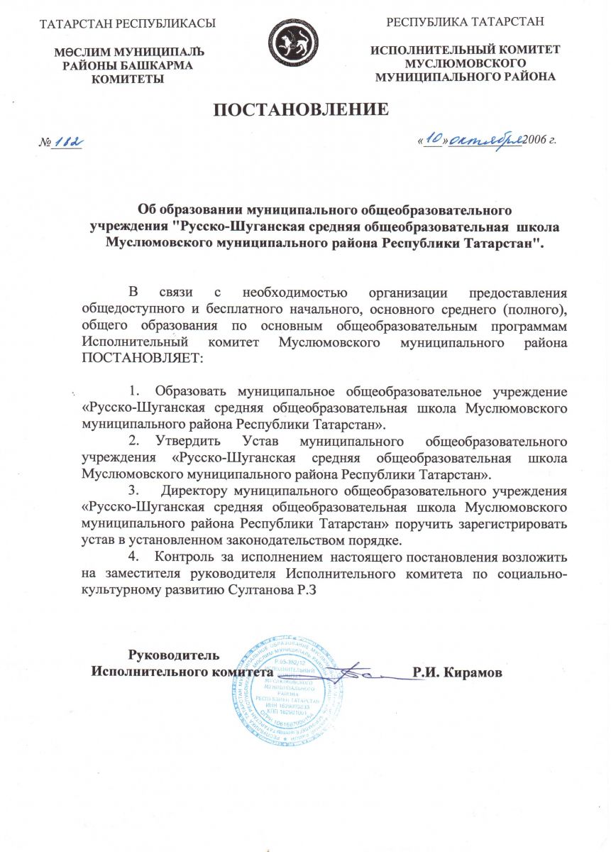Постановление №182 о создании школы