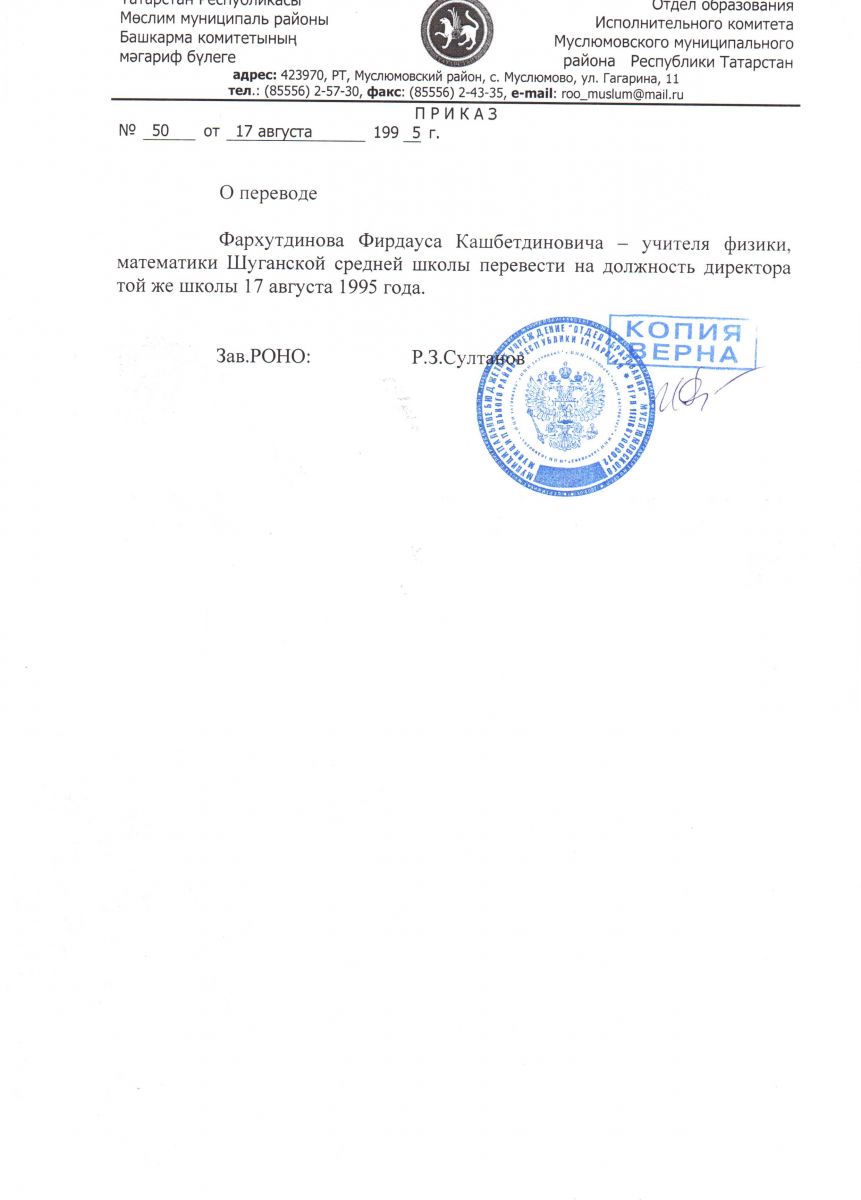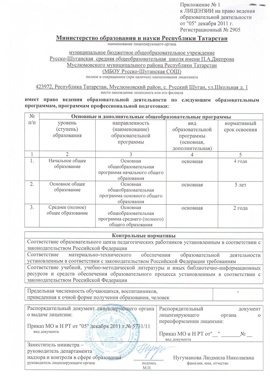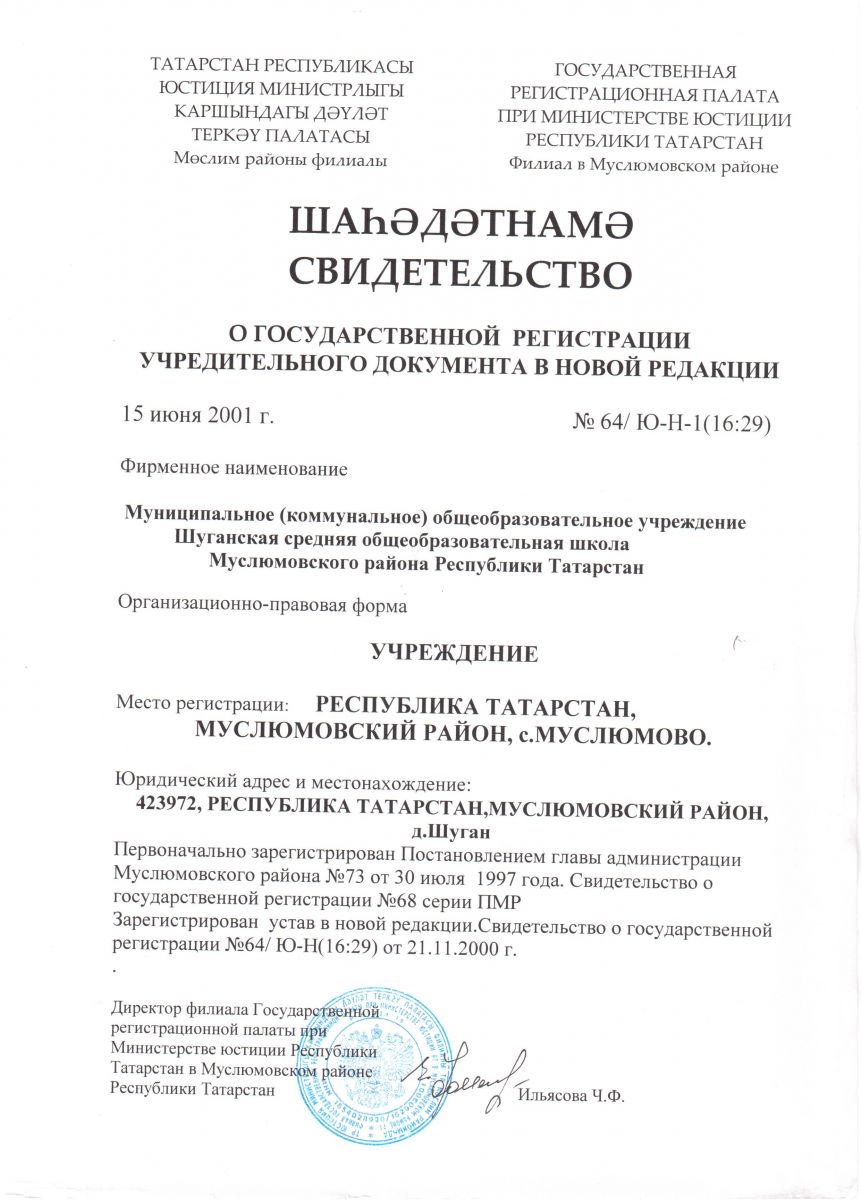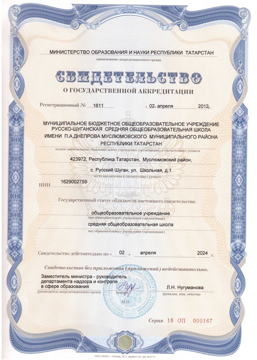| Адрес: | 423972, Республика Татарстан, Муслюмовский район, с. Русский Шуган, ул. Школьная, д. 1 |