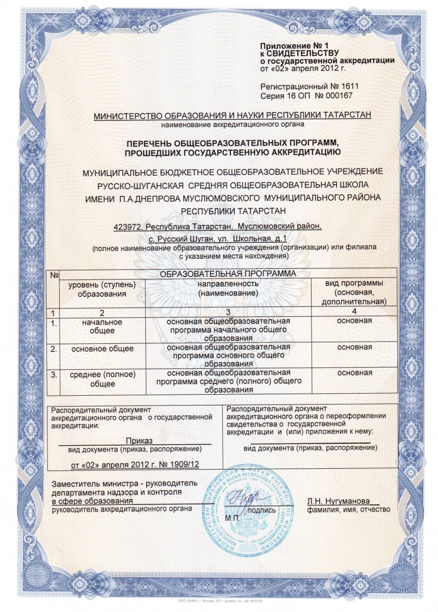 Муниципальное бюджетное общеобразовательное учреждение " Русскошуганская основная общеобразовательная школа имени П.Днепрова Муслюмовского муниципального района Республики Татарстан"
