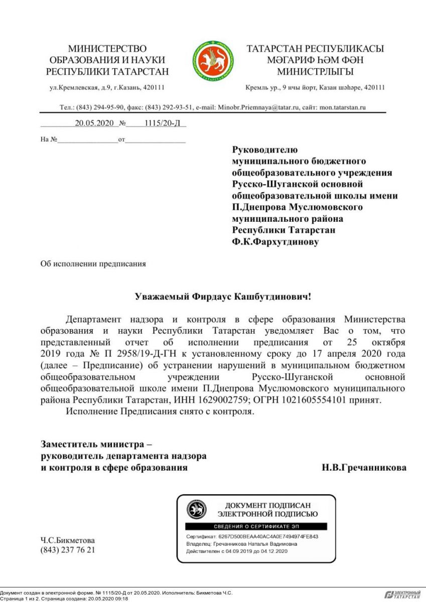 Адрес: 423972, Республика Татарстан, Муслюмовский район, с. Русский Шуган, ул. Школьная, д. 1