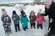 Кечкенәләр төркеме балалары белән саф һавада яңа яуган ак карны күзәттек, хәрәкәтле уеннар уйнадык.