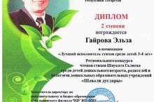 Шәүкәт Галиев шигырьләрен яттан сөйләү буенча"Шәвәли дуслары" региональ конкурсында катнашып Гайрова Эльза II урынга лаек булды. Эльзага алда да иҗади уңышлар телибез.