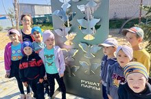 Көзнең матур бер көнендә авылдагы "Рушат" паркына уйнарга бардык. Анда балалар рәхәтләнеп уйнадылар: батутта сикерделәр, таудан шудылар, таганда атындылар...