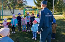Балалар белән ачык һавада МЧС хезмәткәре белән очрашу булды. Ул балалар белән янгын куркынычсызлыгы турында әңгәмә үткәрде.