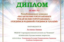 "Ватан белән горурланабыз! Тукай белән горурланабыз" республика конкурсында катнашып зурлар төркемедә тәрбияләнүче Аглиева Әминә "Сәнгатьле иҗат" номинациясендә 3 урынга лаек булды.
