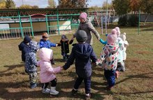 Кечкенәләр төркемендә тәрбияләнүчеләр "Карусель" җырлы-биюле уенын уйнадылар, Кулга-кул тотынып йөрергә, сигнал буенча хәрәкәтләрен үзгәртеп йөрергә өйрәнделәр.