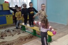 Кечкенәләр төркемендә тәрбияләнүчеләр физик культура шогылендә тигезлек саклап йөрү кунекмәләренә өйрәнделәр.