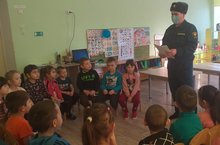 В детском саду проведен инструктаж с сотрудниками по пожарной безопасности. Сотрудник МЧС провел беседу с детьми.