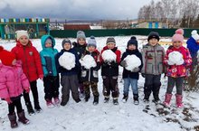 Дети старшей группы на прогулке помогали взрослым расчистить веранду от снега.