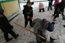 Зурлар төркеме балалары саф һавага чыккач зурларга веранданы кардан чистартырга булыштылар.