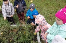 Воспитанники старшей группы ходили на экскурсию в сельский парк, собрали еловых шишек для занятий по ручному труду.