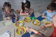 Воспитанники младшей группы научились аккуратно клеить круги.
