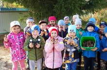 Бакча янындагы тәҗрибә участогында кечкенәләр төркемендә тәрбияләнүчеләр көзге уңышны җыйдылар.
