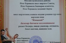 Совет Старокарамалинского местного самоуправления и Исполнительный комитет, Старокарамалинский дом культуры наградил Дипломом коллектив Старокарамалинского детского сада "Кошкай" за весомый вклад в развитии социально-культурной жизни села.