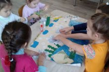 В старшей группе прошла деятельность по аппликации на тему "Зимняя красота". Дети очень хорошо потрудились. Коллективную работу оценили родители.
