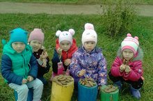 Кечкенәләр төркеме табигый материалдан кул эшләнмәләре ясау өчен чыршы күркәләре җыйдылар.