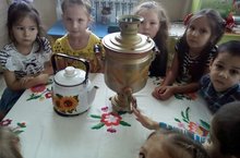 В старшей группе в рамках проекта "За столом" прошла деятельность по развитию речи на тему "Чайник и самовар".