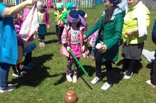 Бүген бакчада Сабантуй бәйрәме узды. Балалар корәш, капчык киеп йөгерү, таяк тартышу, кашыкка йомырка куеп йөгерү, күзне бәйләп чулмәк вату, сәнгатьле итеп шигыръ сөйләү ярышларында катнаштылар. Күзне бәйләп әйбер кистеләр, әйлән-бәйлән уеннары уйнадылар. Бер бала да бүләксез калмады. Бүләкләрне әти-әниләр комитеты әзерләде. Бакча коллективы шундый матур бәйрәмне оештыруда ярдәм итүләре өчен әти-әниләргә бик зур рәхмәт белдерә.