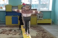 Физик культура эшчәнлегендә кечкенәләр төркеме балалары бер- бер артлы йөрергә, йөгерергә, гимнастик скамейкадан гәүдәләрне туры тотып йөрергә өйрәнәләр.