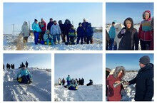 Күңелле каникул әле дәвам итә.Бүген укучылар, укытучылар һәм әти-әниләр чаналарда тау шуарга чыктык.