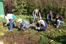 Укучылар бакчада җыештыру эшләре башкарды