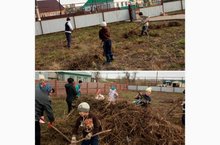 Мәктәп яны бакчасында җыештыру эшләре башкарылды