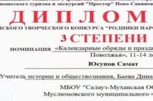 Учащиеся Шаяхметов Б. и Юсупов С. были удостоены дипломами 2 и 3 степени в республиканском творческом конкурсе "Родники народов поволжья". Руководители Гараева Р.М. и Баева Д.Н
