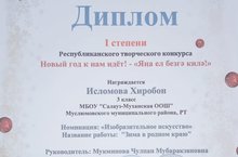 3 нче сыйныф укучысы Исломова Хиробон "Яна ел безгә килә" республика иҗади конкурсында җинү яулады.