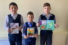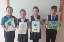 1-3 сыйныф укучылары Экология һәм хезмәт айлыгы кысаларында, "Земля - наш общий дом" дигән темага рәсемнәр ясадылар