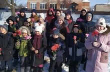 Туган теллэр һәм халыклар бердәмлеге елы һәм Ватанны саклаучылар көне унаеннан, укучылар авыл һәйкәленә чәчәкләр салдылар.
