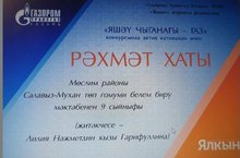 9 нчы класс укучылары "Яшәү чыганагы - газ"исемле республика конкурсында катнашып, "Шәп сыйныф" номинациясендә Рәхмәт хаты белән буләкләнде. Җитәкчесе - Гарифуллина Л.Н