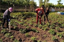Каникул чоры булуга карамастан мәктәп бакчасында эш гөрли: Үсемлекләр чүптән арына, бәрәңге аралары эшкәртелә. Бу эшләрне башкаруда чыгарылыш класс укучыларының ярдәме зур