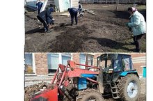 Мәктәп бакчасында экология һәм санитар чистарту айлыгы кысаларында җыештыру эшләре бара.