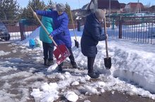 Балалар бакчасы территориясен кар сулары төшүдән саклау, кардан арындыру буенча күмәк эшләр алып барыла.