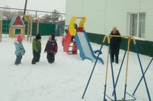 На радость детям обновили игровую площадку детского сада.Оборудования приобрели на средства самообложения села.