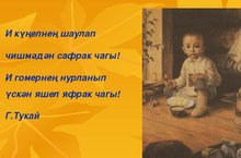 Илдә – кояш, җирдә кояш.Тукай көне канат җәйгән.Бәйрәм бүген! Бәйрәм бүген!Тукай көне – безнең бәйрәм!Иске Вәрәш балалар бакчасында Тукайга багышланган кичә узды