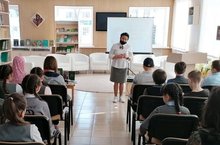 Туган телләр һәм халыклар бердәмлеге елы, татар халкының бөек улы, каһарман шагыйрь Муса Җәлилнең тууны 115 еллыгы уңаеннан район үзәк китапханәсендә 5 нче сыйныф укучылары өчен китапханә дәресе үткәрелде. Эчтәлекле презентация, китапханә хезмәткәрләре әзерләгән чыгышларны тыңлаганнан соң, һәр укучы күңеленә хуш килгән татар китабын сайлап, өйләренә укырга алдылар.