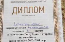 Поздравляем ученика 9 класса Давлетшина Дениса, занявшего III место в первенстве РТ по волейболу среди юношей 2003-2004гг.р.