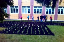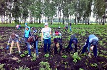 "Ромашка" хезмәт лагере укучылары мәктәп бакчасына чәчәкләр утырттылар, ял вакытында волейбол уйнадылар.