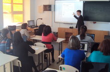 1 марта дирекцией школы был организован семинар-практикум по усвоению инновационных технологий в образовании для педагогов базовой школы. Заместитель директора школы-центра компетенции в электронном образовании Шарифуллин А.Р. показал возможности создания презентации на prezi.com. Учителя на практике проверили свои навыки.