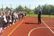 Сегодня для учащихся 1-11 классов состоялась общешкольная линейка, на котором выступил заместитель начальника полиции по оперативной работе отдела МВД России в Муслюмовском районе – Бакиев Ирек Фаритович. Он провел профилактическую беседу на тему «Профилактика правонарушений» во время летних каникул.