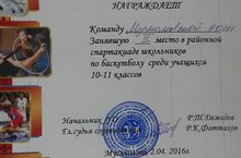 Сегодня на базе нашей школы прошла районная спартакиада школьников по баскетболу среди учащихся 10-11 классов. Команда нашей школы заняла 2 место. Поздравляем!!!