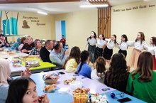 С учащимися 6 а класса и их родителями за чайным столом был организован семейный праздник. Родители, учащиеся, разделившись на 3 группы, соревновались в игре "Башваткыч". Праздничный вечер сопровождался песнями, танцами, стихами, поздравлениями.