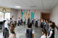 Мәктәп психологы Л.М.Хәлиуллина 1сыйныф укучылары белән "Әйдәгез,танышабыз!" дигән темага тренинг элементлары белән уен үткәрде.