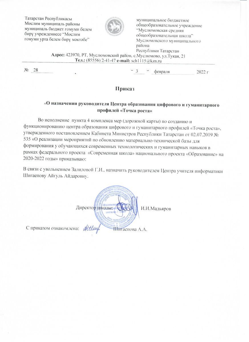 Положение о Центре образования цифрового и гуманитарного профилей "Точка роста"