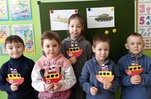 Воспитанники детского сада на занятие рисования рисовали военную машину.Провели беседу о войне ,посмотрели альбом о ветеранах-земляках.