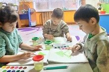 Балалар рәсем эшчәнлегендә чыршы ясадылар һәм буяу белән бизәделәр.